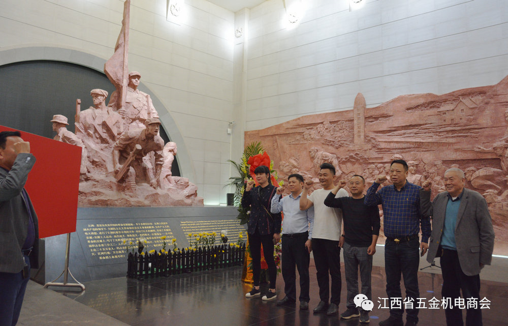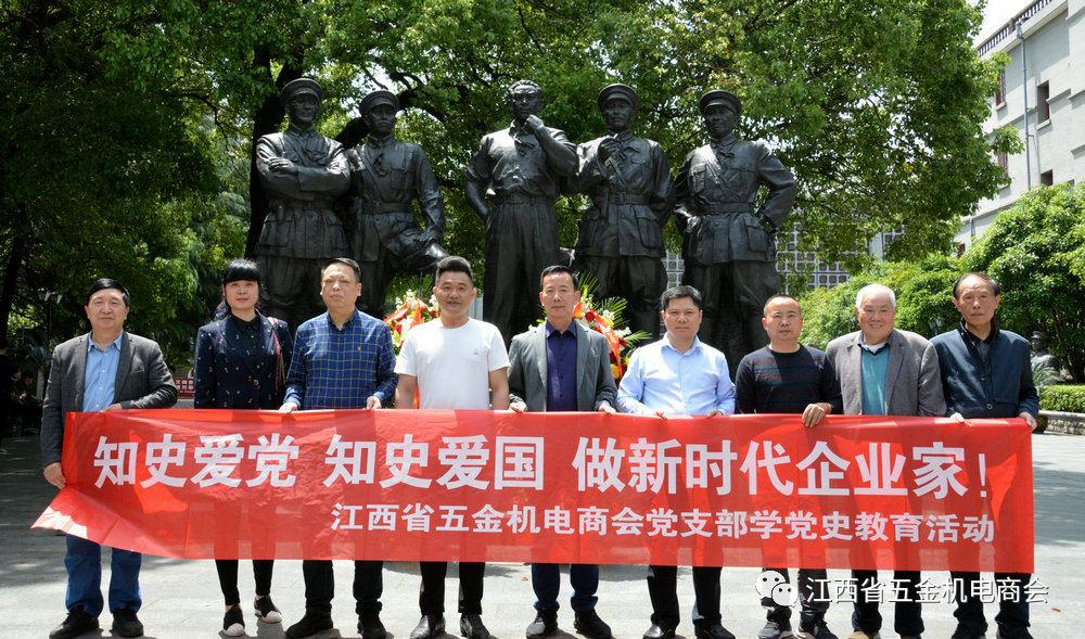 2021年4月30日上午,江西省五金机电商会党支部组织党员赴江西革命烈士纪念堂、“八一”起义纪念馆开展“知史爱党、知史爱国,做新时代非公经济企业家”主题党日活动,追忆党的光辉历史,感悟红色传统精神。商会党支部书记刘和平、党支部副书记李银强,商会领导李省文、吴慧军、龚米根、党员熊光明、胡美叶、周国栋等参加活动。在纪念堂大厅,刘和平书记组织新党员入党宣誓,同时,带领全体党员举行重温入党誓词活动,从字里行间感悟信仰的力量,面对鲜红的党旗,全体党员举起右手,庄严的念出入党誓词:“我志愿加入中国共产党,拥护党的纲领,遵守党的章程……”,声音回荡在大厅,坚定而充满力量。随后走进纪念堂,在各楼层展厅,全体党员认真观看每件展品,仔细聆听纪念堂讲解员的详细介绍,并留影纪念,眼睛里满是对革命先烈们的崇敬之情,党员们切身感受到老一辈革命家和先烈们英勇奋斗、忘我牺牲的伟大精神。